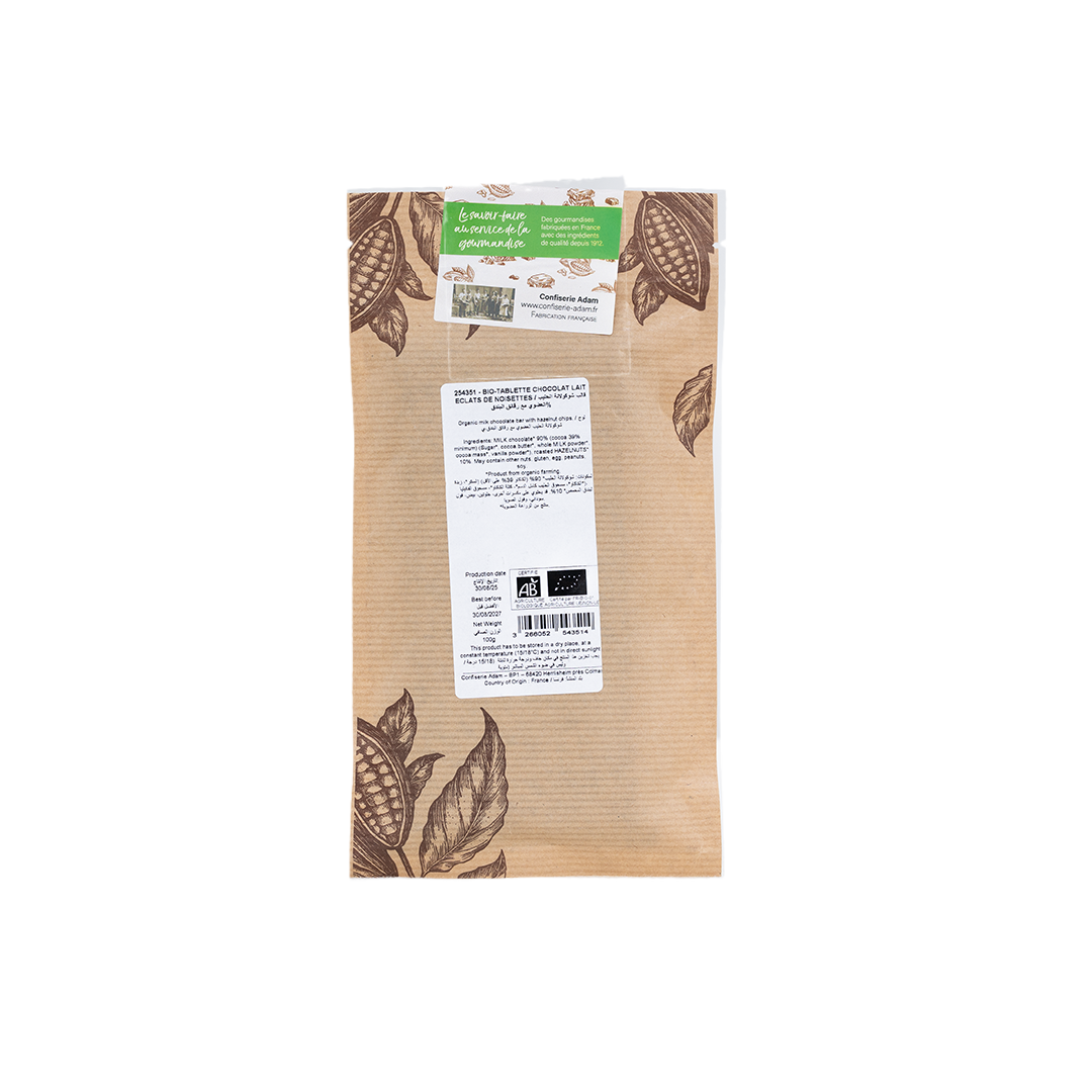 شوكولاتة الحليب العضوية مع رقائق البندق 100 جرام