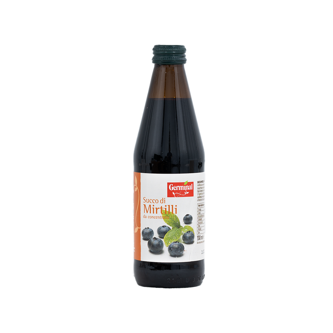 عصير التوت الأزرق GERMINAL 330 مل، معصور على البارد من التوت العضوي المعتمد، يتميز بلون نيلي عميق ورائحة فواكه الغابة المنعشة.