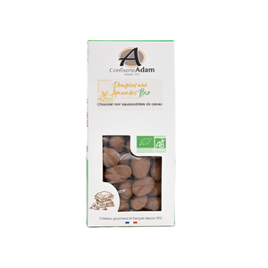لوز محمص عضوي مغطى بالشوكولاتة الداكنة ومرشوش بمسحوق الكاكاو 150 جرام