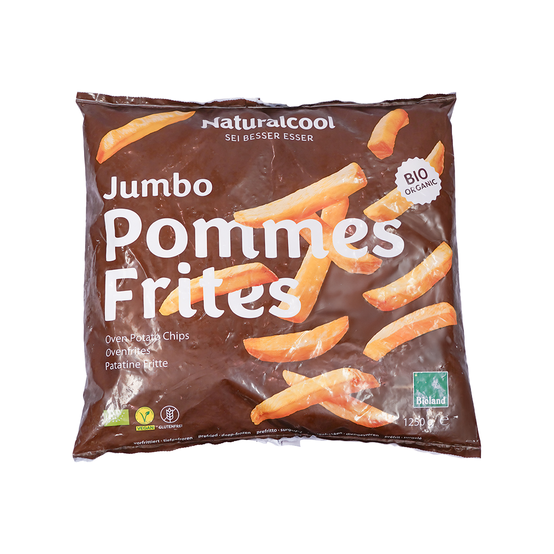 بطاطس جامبو المقلية العضوية من ناتشورال كول متوفرة في عبوة كبيرة سعة 1250 غرام، مثالية للعائلات والتجمعات. مقلية مسبقًا بزيت دوار الشمس العضوي ومجمدة للحفاظ على جودتها. التحضير بسيط: اخبزها في الفرن أو اقليها حتى تصبح ذهبية اللون ومقرمشة. استمتع بوجبة خفيفة عضوية لذيذة، مُرضية وصديقة للبيئة.