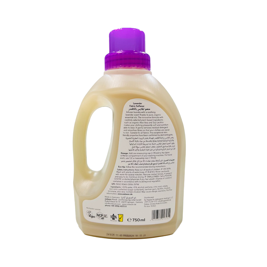 يزيل هذا المُنعّم للأقمشة بقايا المُنظّفات بفعالية، ويُنعّم الألياف، ويُسهّل الكيّ. رائحته اللافندر المُستخلصة من الزيوت العطرية العضوية تُضفي رائحةً مُهدئة. مُختَبَر من قِبَل أطباء الجلدية، وهو لطيف على البشرة ومناسب لجميع أنواع الأقمشة.