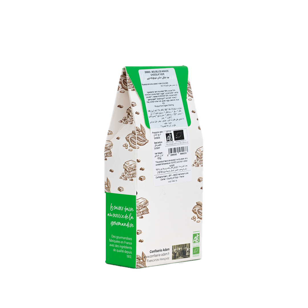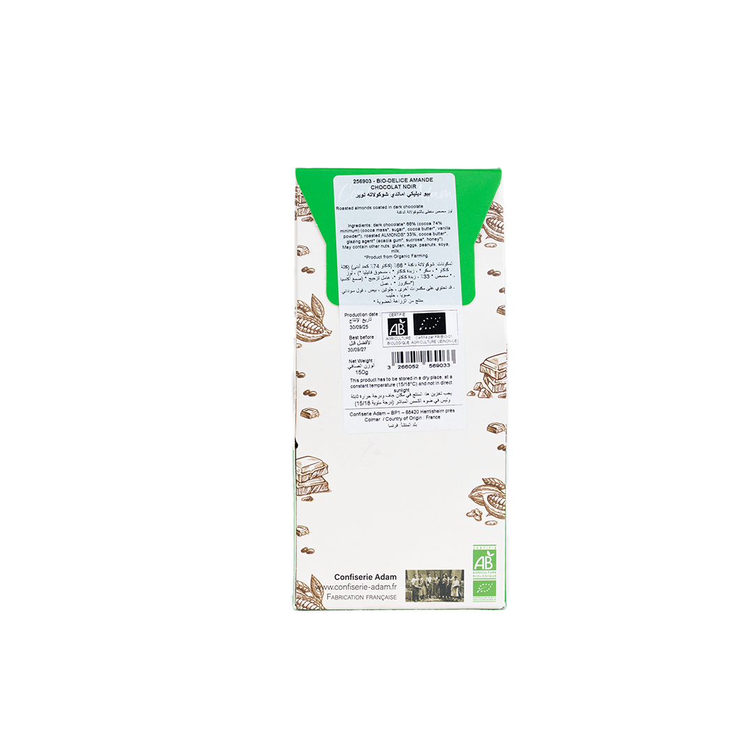 لوز محمص عضوي مغطى بالشوكولاتة الداكنة 150 جرام