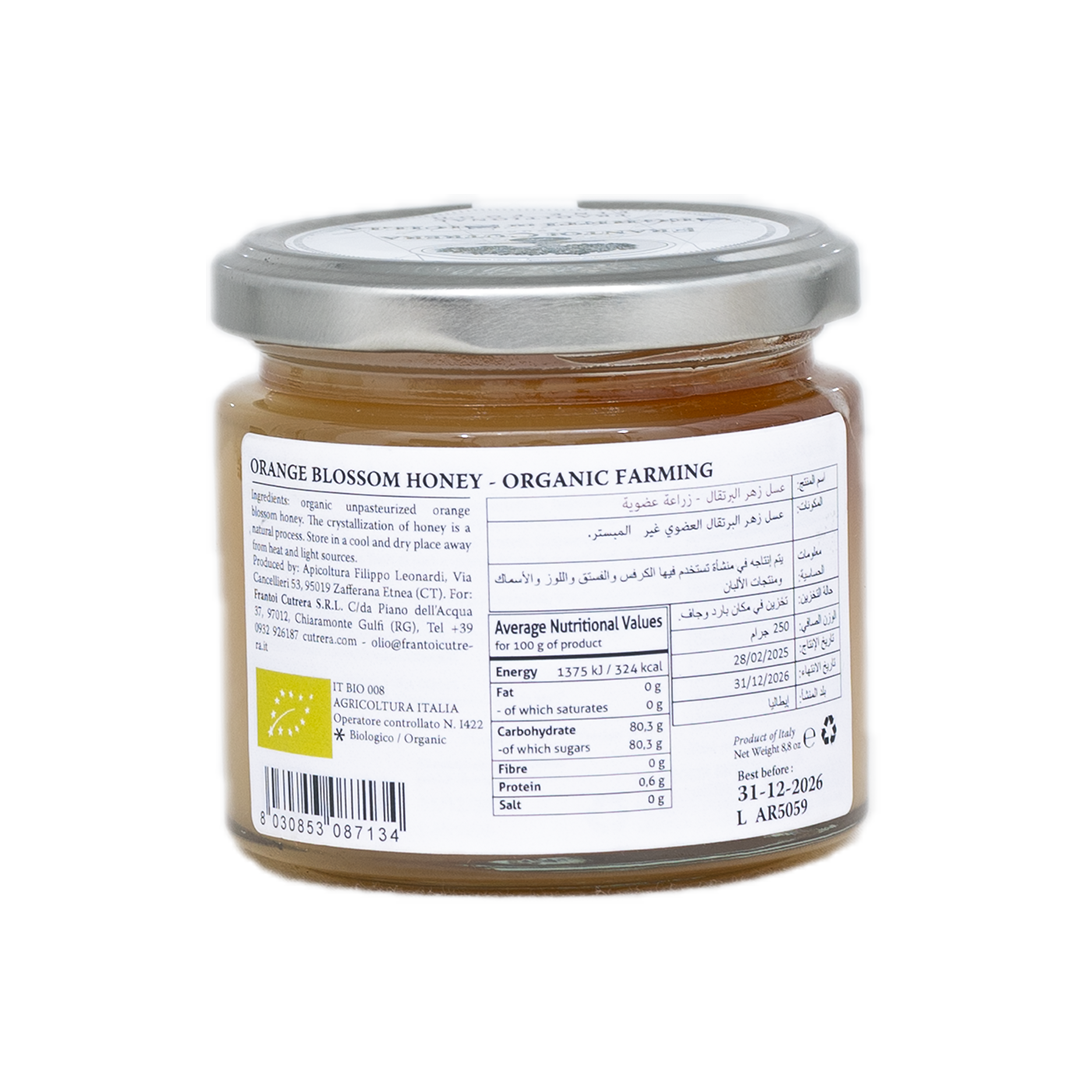 استمتع بحلاوة عسل زهر البرتقال العضوي الطبيعية. يحتوي هذا البرطمان، سعة 250 غرامًا، على عسل عضوي نقي بنكهة زهرية رقيقة، مما يجعله إضافة رائعة للشاي والزبادي والحلويات.