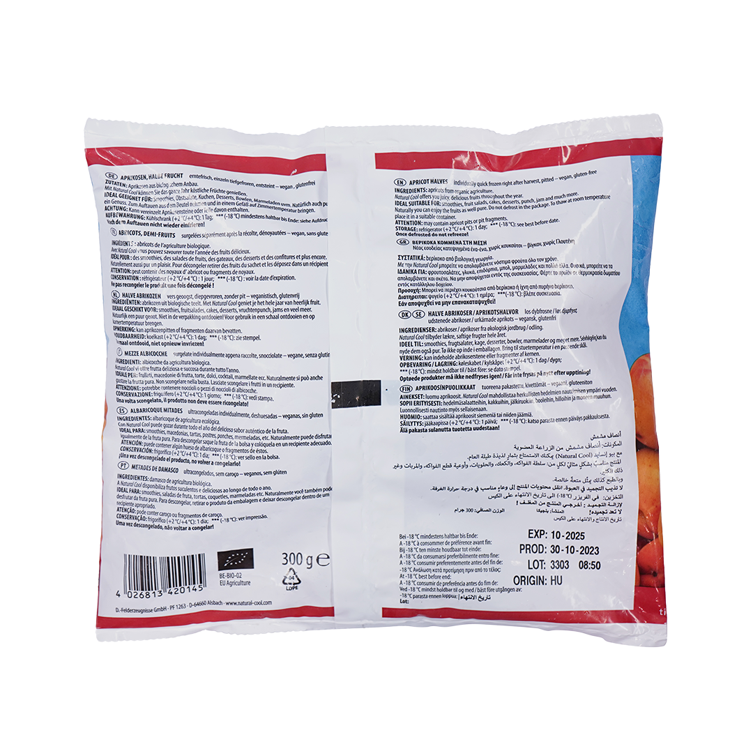 Natural Cool Organic Frozen Apricots (300g) are premium apricot halves, pitted and sourced from organic farming in Belgium. Harvested at peak ripeness, they are individually quick-frozen to preserve flavor and nutrients. Ideal for smoothies, desserts, or as a healthy snack.