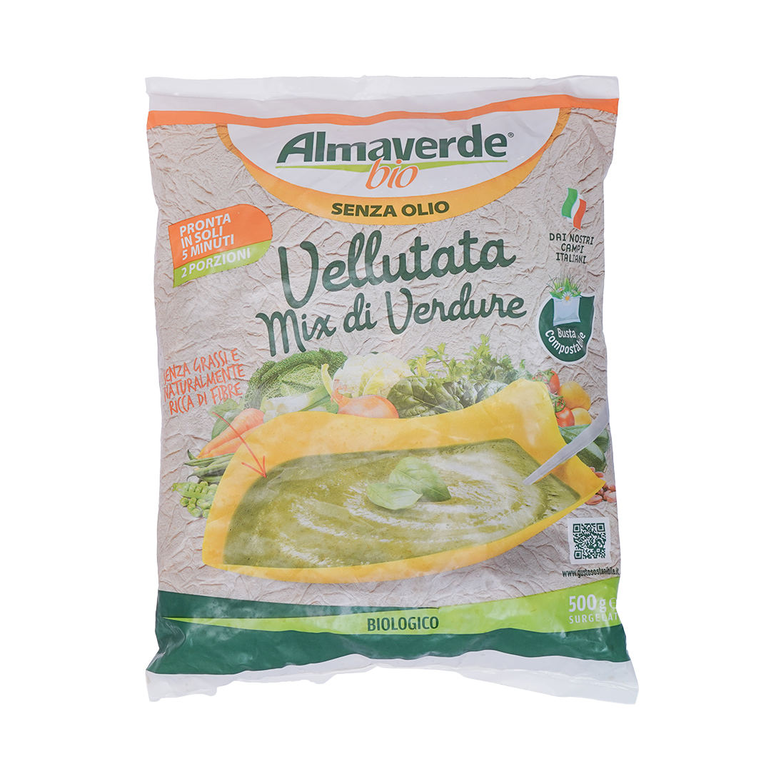 Almaverde Bio Organic Vegetable Mix Soup is a convenient and nutritious meal option made from a blend of organic vegetables. It's fat-free, rich in fiber, and free from gluten and lactose. The soup is easy to prepare and comes in compostable packaging, reflecting a commitment to sustainability.