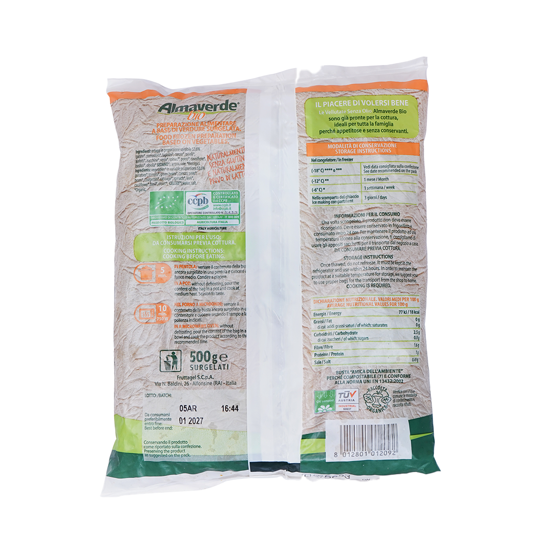 This organic vegetable soup mix is a low-calorie, fiber-rich option that supports digestive health and aligns with vegetarian and vegan diets. Its gluten- and lactose-free composition makes it suitable for those with dietary sensitivities. The compostable packaging reflects Almaverde Bio's commitment to sustainability.