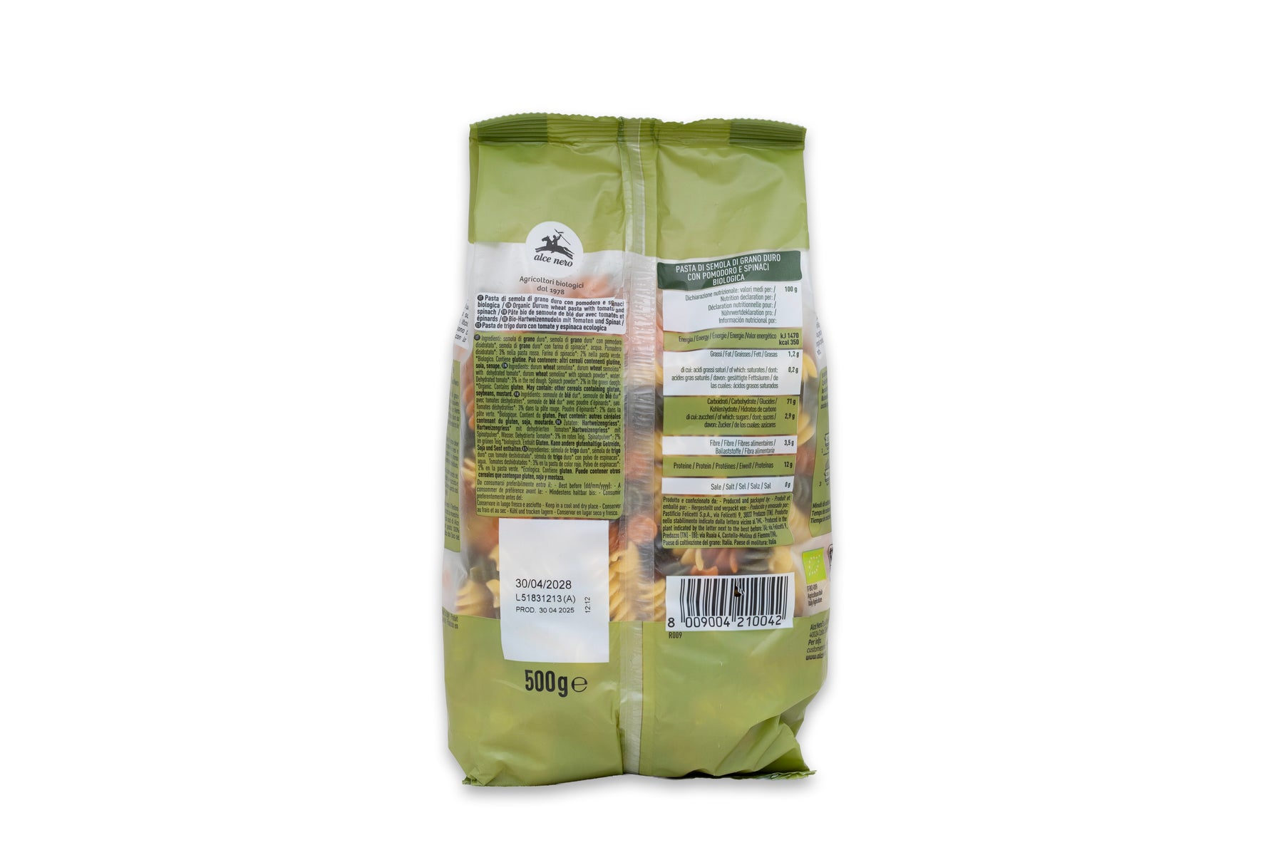 Organic durum wheat Tricolor Fusilli 500g