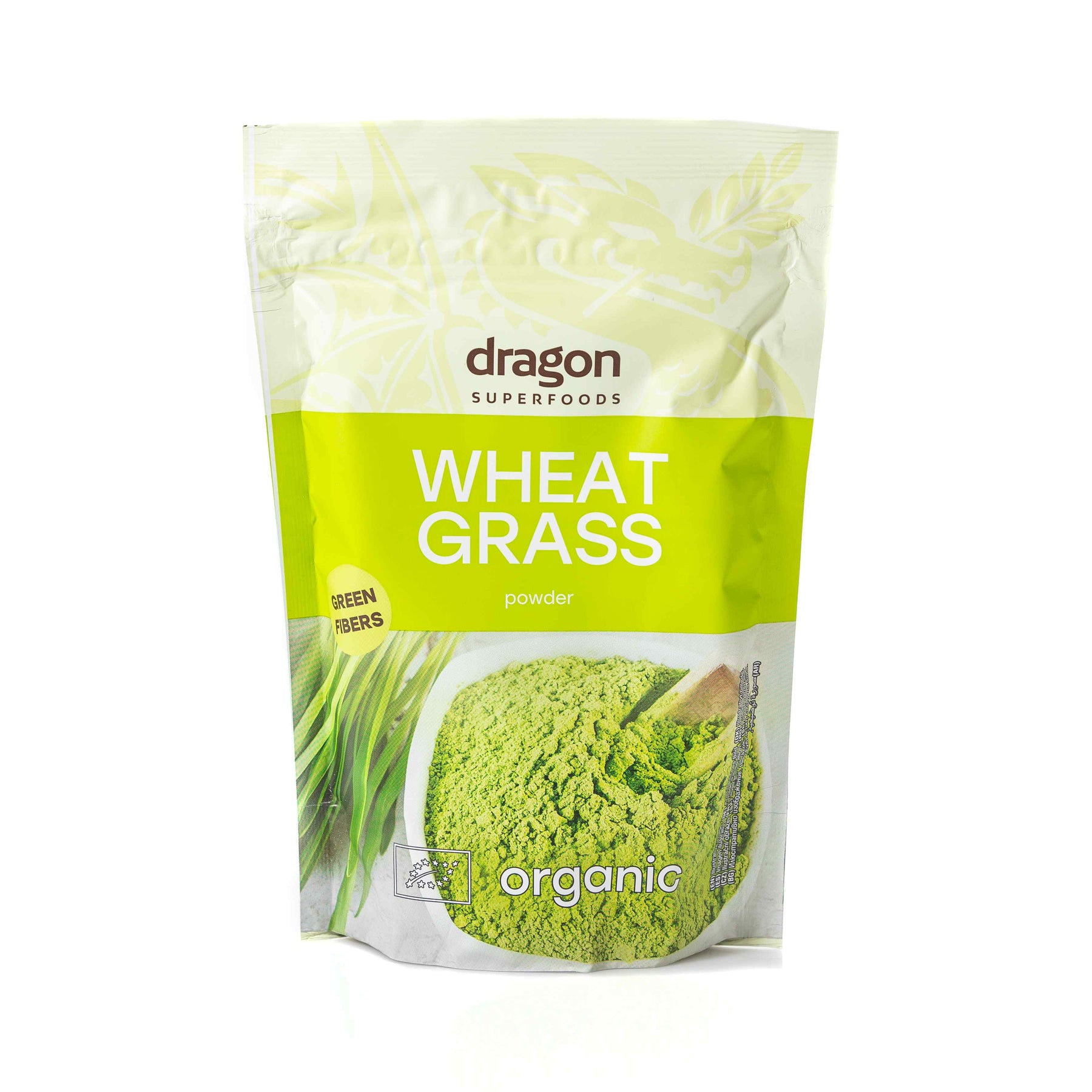 Dragon Superfoods Wheat Grass Powder is the finely-milled young green part of the wheat plant. The characteristic green colour is due to the natural chlorophyll pigment. With its high fiber content, it is a great boost to your daily smoothie or fresh juice. Simply mix ½ cup green grapes, ½ cup cubed pineapple, 1 cubed peach, 120 ml filtered water and 2 teaspoons of our wheatgrass powder.