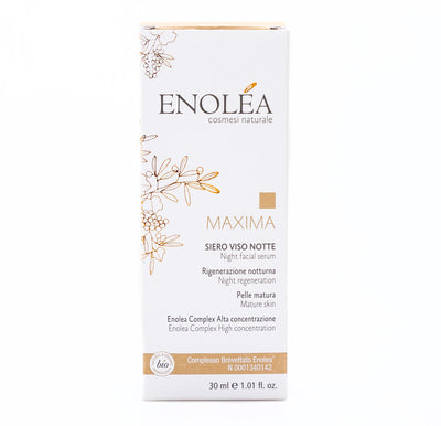 REPAIRS & HYDRATES. Enolea Maxima Night Face Serum is enriched with natural ingredients and vitamins that help to repair and hydrate the skin overnight. REDUCES FINE LINES - The serum helps to reduce the appearance of fine lines and wrinkles, for a youthful complexion. MOISTURIZES SKIN - The serum also helps to keep the skin moisturized, preventing it from drying out.