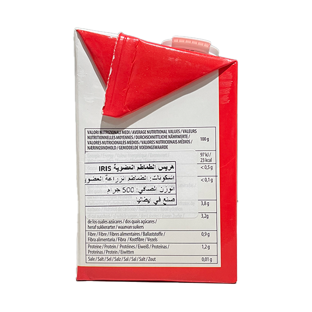 Are you searching for organic tomato puree? Well your search ends here, IRIS presents a flavorful tomato puree that is made with only natural ingredients. Fresh and sustainably farmed tomatoes are processed as soon as they are harvested to preserve their natural taste. Make every meal flavorful with IRIS tomato puree.