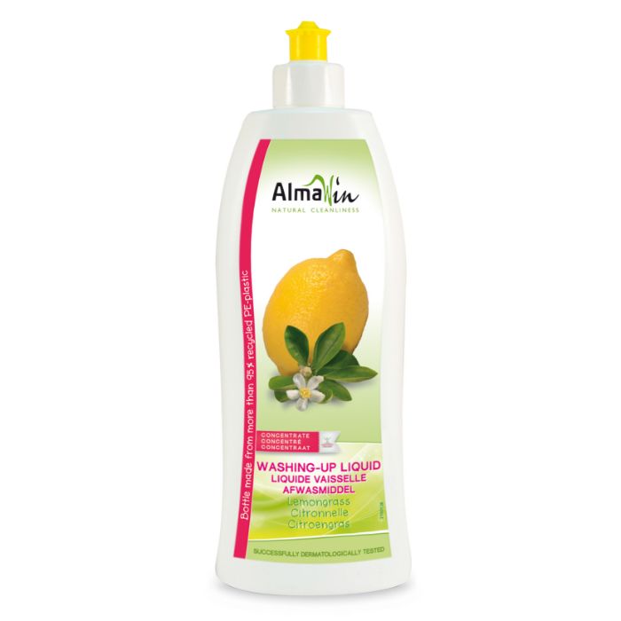 Almawin Organic Dishwashing Liquid Lemongrass 500ml is a highly concentrated detergent that effectively cleans dishes while being gentle on the skin. Its fresh lemongrass scent adds a pleasant aroma to your kitchen, and the product is eco-certified, vegan, and dermatologically tested.