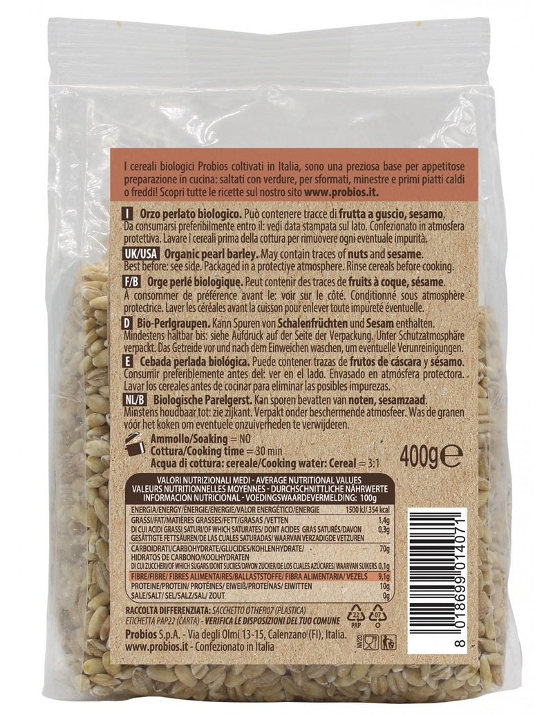 Experience the hearty and nutritious qualities of our Organic Pearl Barley, a versatile addition to elevate your culinary creations. Sourced from organic cultivation, this barley is carefully processed to retain its natural essence while offering a tender texture and a nutty flavor. Packed with dietary fiber, vitamins, and minerals, it provides a mindful choice for soups, stews, salads, and various dishes. Whether used as a base for hearty meals or creatively incorporated into your recipes, our Organic Pearl Barley captures the authenticity of organic goodness. Elevate your cooking experience with the distinctive taste and health-conscious attributes of this versatile grain, supporting both flavor and well-being in your dishes.