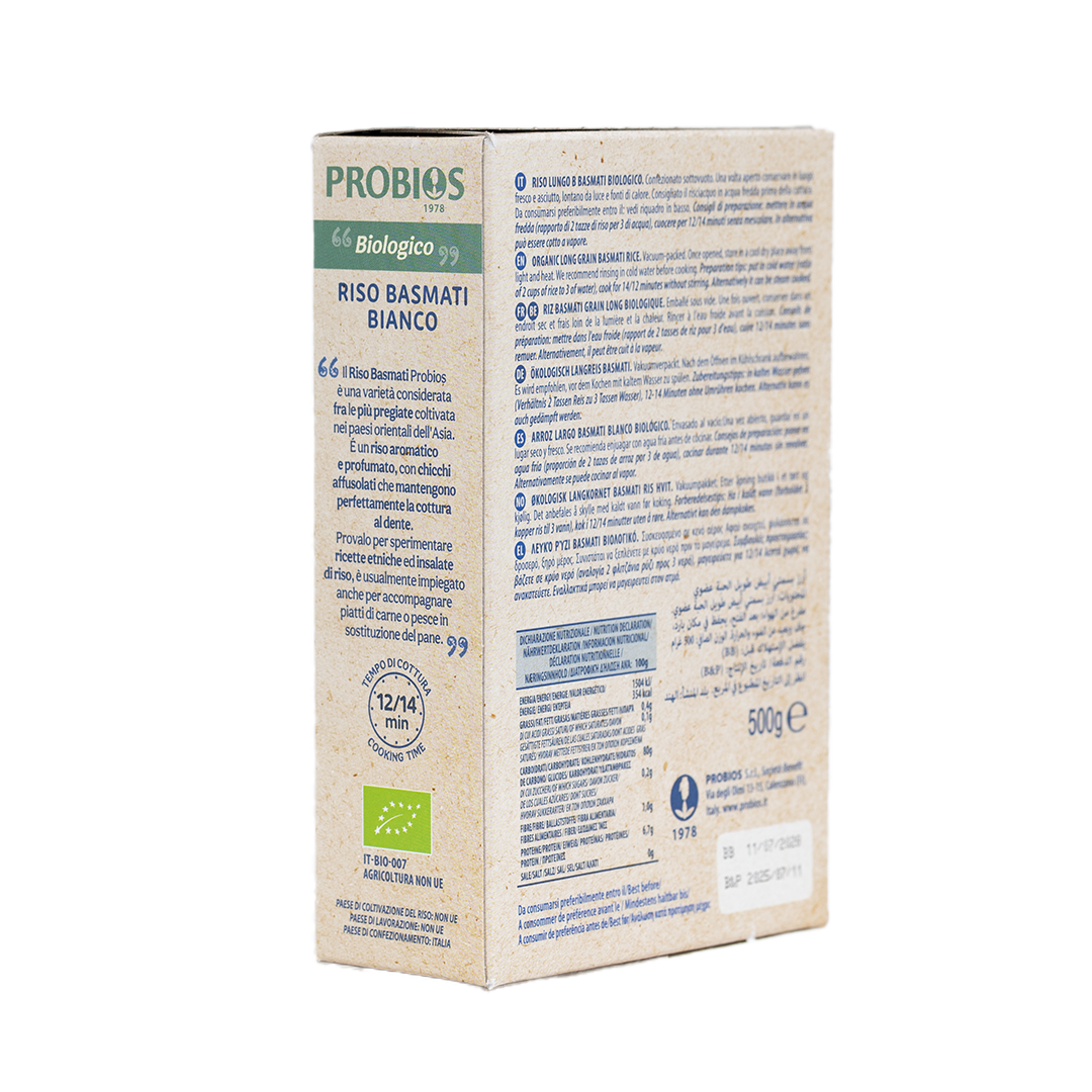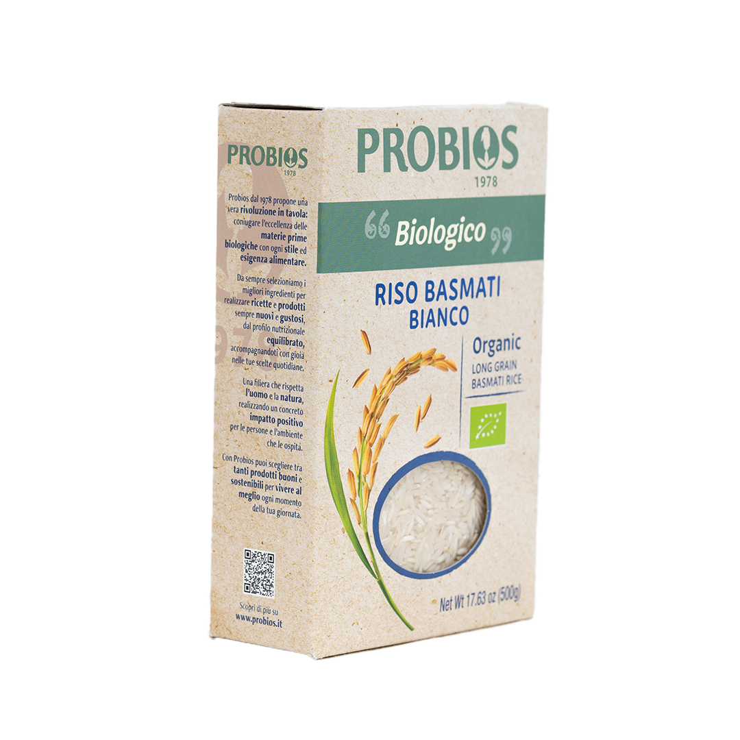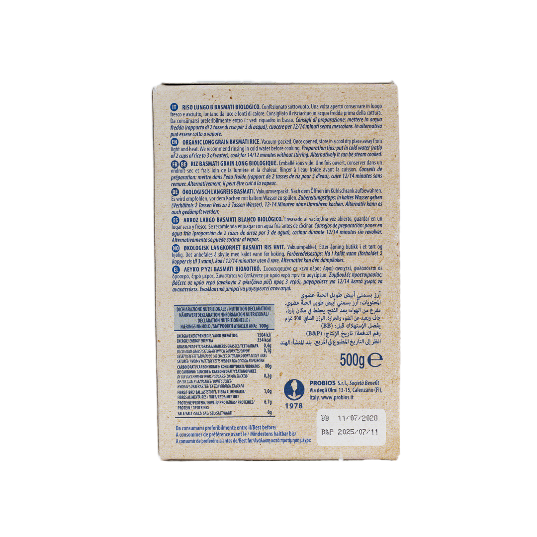 Probios Organic White Basmati Rice is a fragrant, long-grain variety from India, ideal for dishes with rich, spicy flavors. It cooks up fluffy with well-separated grains, making it perfect for pilafs, curries, and salads.